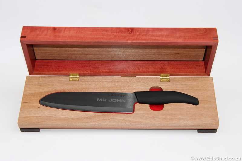 A laser engraved ceramic carving knife for John - a Japanese theme.